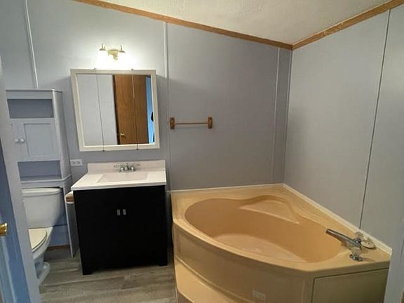1997 Manufactured home and includes the lot/land. 3 bedrooms 2 baths. The seller recently added new laminate flooring in 2023. Newer appliances have been added, newer water heater, some new interior paint, new bath vanity and flooring, a new front storm door, some new gutters, new siding added on 2 sides North and West sides, and 4 new windows added. There is central air. Shingles do need to be replaced but will be done when the weather allows. Seller is willing to credit a buyer at closing costs of new shingles if the buyer is interested or the seller will have completed them when weather permits. This home is not on a permanent foundation and the seller will not do any permanent foundation at this price they would consider raising the price to accommodate any permanent foundation expense if the buyer needs the foundation for financing. This property is sold "as is".