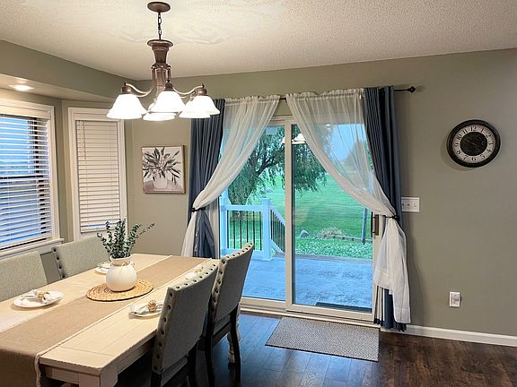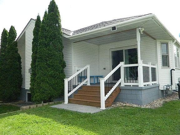 Great location on the edge of town. Open floor plan with vaulted ceilings, main floor laundry. Beautiful kitchen with cement countertops, engineered flooring. Insulated basement walls, updated 2nd kitchen and living room space. Basement area could easily be turned into a rental apartment, but great for guests! Four large egress windows fill the rooms w/natural light, all new flooring in the basement. Basement bathroom fully remodeled w/barn door, floating shelving in both new hallway by bathroom and under stairway space. Small details making a big impact have been added. Extra shelving in closets, dimmable lights. New railings on front and back porches, raised garden beds and private back yard has been created with arborvitae tree fence. Property has a willow, bass tree and evergreens, nicely landscaped. Don't miss the garage - shelving, improved stairwell access w/unique open railing. Included: Countertop Air fryer/Toaster & Barstools in the breakfast nook & playset in the back yard!