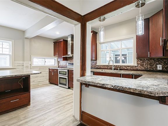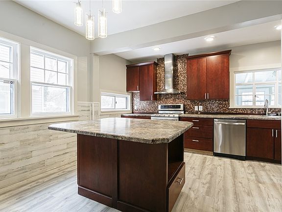 In the heart of Maplewood District stands this distinguished 5-bedroom home, offering 2,318 square feet of living space across 2.5 stories. This home, with its 2-1/2 baths, provides ample room for modern living while preserving timeless charm. A finished basement, complete with a full bath, adds versatility, while a third-floor bedroom with its own half bath offers privacy and convenience. The inviting large foyer sets the tone for the home and the enclosed back porch is perfect for relaxation or entertaining. Recent updates elevate the home’s appeal, including a remodeled second-floor main bath, fresh paint, new flooring, and modern light fixtures throughout. The kitchen is a culinary delight with a spacious island, separate breakfast bar, including a refrigerator, gas stove, hood vent, and dishwasher. Practical improvements abound, with a new roof and hot water tank installed in 2024, ensuring comfort and peace of mind for years to come. This residence embodies the essence of contemporary living in a historically rich neighborhood.