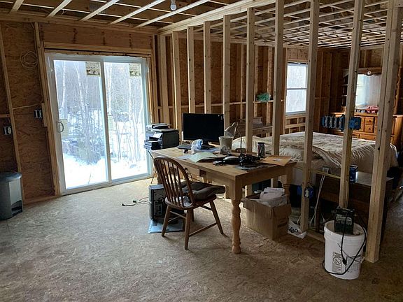 Snowmobilers take note: At the base of BEAR NOTCH RD it's Opportunity Time! Large unfinished home designed to have 2 BRs and 2.5 baths on each level & a large open kitchen/dining/living area. Abutting the White Mountain National Forest on 2 sides, it's the last house before BEAR NOTCH RD. A great spot for snowmobiling, hiking & skiing. Sold AS IS. After a fire, seller began rebuilding in 2017, but never got beyond the interior studding. Rooms partitioned, septic, electric, & Bartlett Village water. There is a temporary kitchen and a bath, but no insulation or sheetrock. Finish it and have a great Mount Washington Valley location minutes to Attitash Ski Area, the Saco River, Bear Notch Ski Touring and fabulous shopping in North Conway. Bonus: A short drive to Bretton Woods!