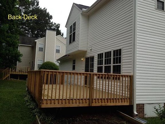 Charming 3 bedroom 2.5 bath located in a convenient area of Wake Forest! Walk into the house and the living room is on the left and the dining room on the right. Either room takes you to the kitchen which has new granite countertops and update fixtures. There is space for a kitchen table that overlooks the back deck with a beautiful back yard view (lots of trees). There is also a half bathroom on this floor for your convenience. The kitchen is located next to the walkout of the one-car garage. The colors on the main floor make the house feel light and open and has light colored hardwood flooring. On the second floor, you walk upstairs to the laundry room (washer and dryer included), turn to the left and see a spacious bedroom with a beautiful bay window. Turn to the right and there is another spacious bedroom. Straight ahead is a full bathroom down the hall on the right. This hallway leads the way to the Master Bedroom, which has it's own full bathroom. The colors on the second floor are warm and inviting and has cherry colored hardwood flooring. The yard has a lot of trees and is a very pretty scene. This home is located in Orchard Park, which is convenient to shopping, restaurants, great schools and more. Located close to Capital Blvd. and Main Street in Wake Forest. This home is move in ready and will not last long, so don't hesitate to contact me about seeing this little Gem! Asking $1600/month in rent. $1600 Security Deposit and $50 Background Check Required. Non-refundable Pet Fee of $200 for 1st pet, $50 for 2nd pet, 2 pet minimum Renter pays separately for all utilities.