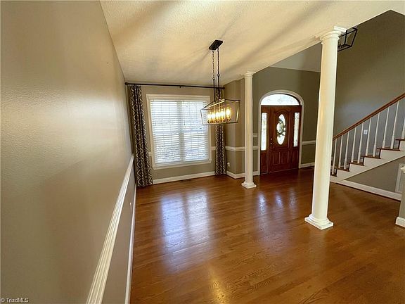 ARCHDALE All Brick 3Br 2.5Ba 1.5 Story! Primary suite on main level features vaulted ceiling, walk-in closet, double vanity, jetted tub & separate shower. Gas log fireplace and vaulted ceiling in living room. Kitchen with breakfast area has granite countertops, tile flooring. Some hardwood floors on main. Private back yard with patio and storage building. New roof in 2019. Great location with access to Creekside Park by trail. Convenient to High Point, Greensboro and Winston-Salem!