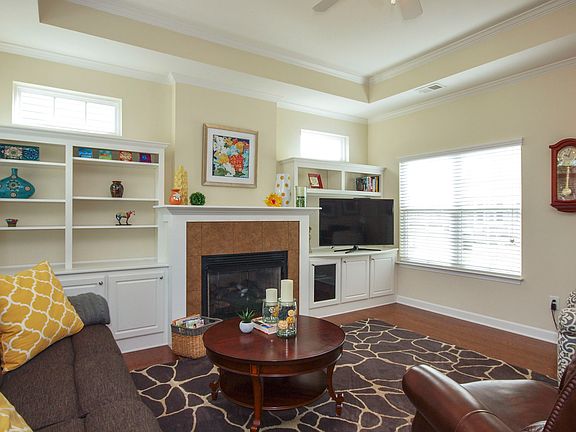 Tons of Upgrades! Fabulous home in Abbey Glen; 1724 sq. ft, Open plan features living rm w built-in cabinets & FP; spacious Kitchen & Dining w granite, lg island w storage, built-in desk & extra cabinet storage, pantry; beautiful hardwoods in main living areas; Trey ceiling Mas BR w WIC & lg tiled shower; Hall BA w jetted tub & tile surround shower. Plenty of outdoor space w private screened porch, patio overlooking fenced yard; Dbl garage; permanent stairs to storage. Pool, fitness & clubhouse!