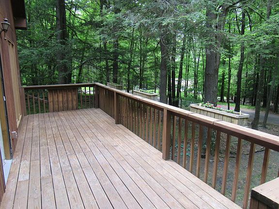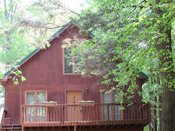 PRIVATE CHALET at Lake Wallenpaupack situated in Indian Rocks Community on a quiet street, just waiting for NEW OWNERS and Their finishing touches, home features nice deck, Open Floor Plan with Cathedral ceiling with Living Room, Dining area and Kitchen with Breakfast Bar, bedroom and bath on 1st floor, Bedroom Loft and Lower Level with Family Room for extra sleeping Space and bathroom. 1 car garage. Private Property for relaxing and unwinding. Be A Part of the Big LakeFor Lake Living!!
