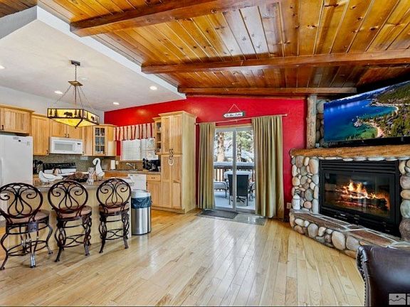 Welcome to this spacious condo nestled in the heart of Stateline, NV. This 2-bedroom, 2.5-bathroom home offers a unique blend of comfort and adventure. The living room, adorned with a cozy fireplace and high beam ceilings, opens up to a large dining area, perfect for entertaining. The fully equipped kitchen is ready to handle any culinary challenge. Step out onto the forest view decks and immerse yourself in the beauty of nature, as this home backs directly onto the woods. For those who love outdoor activities, you'll appreciate the easy access to an outdoor pool, hot tub, tennis and paddleball courts. Convenience is key, with a washer/dryer provided and the property located less than a mile from Stateline casinos and just a mile from the Heavenly gondola. The lake and beach are also just a mile away, making this the perfect base for your Nevada adventures. Experience the best of Stateline living in this large condo that truly has it all.