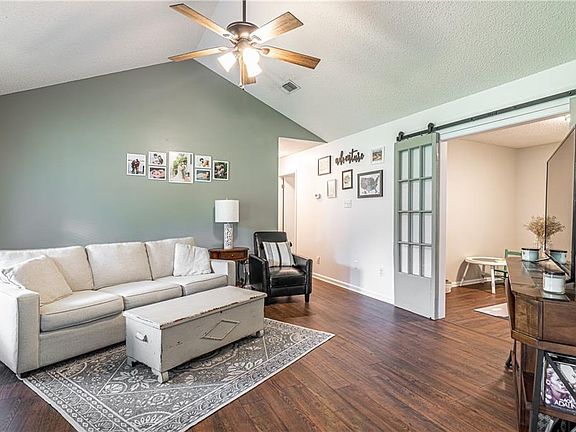 Being located on coveted Anna Lane, a cul de sac street with little traffic makes for peace and quiet right in the middle of all of Pineville's conveniences. Brick homes have a timeless appeal, and the beautiful flooring adds to its charm. The custom touches like vintage doors in the office area and built-in cabinetry add character and functionality to the space. The tray ceiling in the primary bedroom and and the cathedral ceiling in the living area create a sense of openness and grandeur. Having a second playroom or office area is a versatile feature. Paint, appliances and light fixtures are updated throughout this home. This is a wonderful Pineville home with plenty of custom touches and thoughtful design elements.