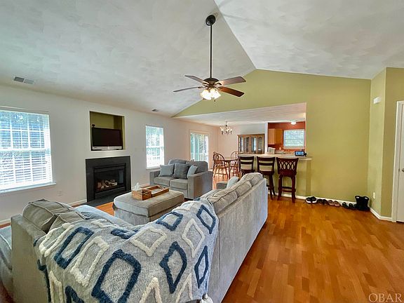 **Updated kitchen with brand NEW stainless steel appliances, LVP flooring and paint. Primary bathroom is under current renovations** Welcome to the sweet, southern town of Grandy in Lower Currituck. Just a 25 minute drive to the Outer Banks beaches, 15 minutes to renowned championship designed golf courses, Sanctuary Vineyards, and minutes from Grandy Greenhouse, local shops and restaurants. Nestled on a .70 acre lot in the highly sought after subdivision Steeple Chase, this 4 bedroom home features an open living concept with a spacious living area boasting a gas fire place, dining, kitchen, a large en-suite, a finished room over the 2 car garage, very private sun deck for back yard entertaining and a covered front porch for lazy summer days and sipping sweet-tea. The current owner has recently updated the hall bath with luxury vinyl plank flooring, on trend vanity, sink, and new toilets for both bathrooms, all new interior doors and hardware, installed a new water softener, whole house water filter, separate reverse osmosis treatment for the kitchen sink, front door keyless entry and fenced back yard area. HVAC new in 2016, hot water heater in 2021. What are you waiting for? Call today for your personal tour.
