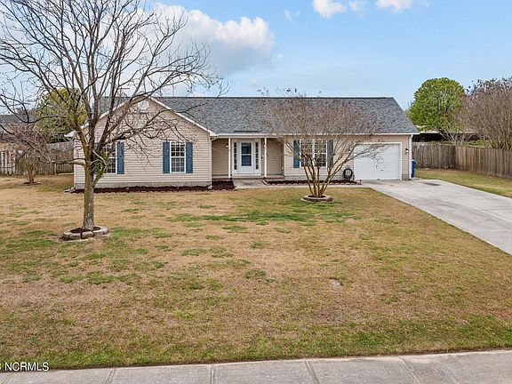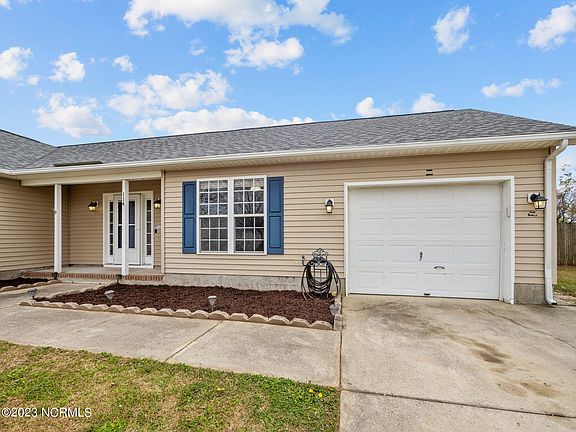 This charming 3-bedroom 2 bath home in Richlands is a rare find – there are no HOA fees to worry about! Enjoy the convenience of being just steps away from Richlands Steed Park and Richlands Elementary. The home features a spacious, pergola-covered patio that overlooks a large, fenced-in backyard, perfect for outdoor entertaining. You'll also appreciate the large shed with concrete flooring that can be used as a shop, man cave, or she shed. Inside, the freshly painted living room boasts vaulted ceilings and ample space for comfortable living. Don't miss out on the opportunity to schedule an appointment for this lovely property, just in time for PCS season.