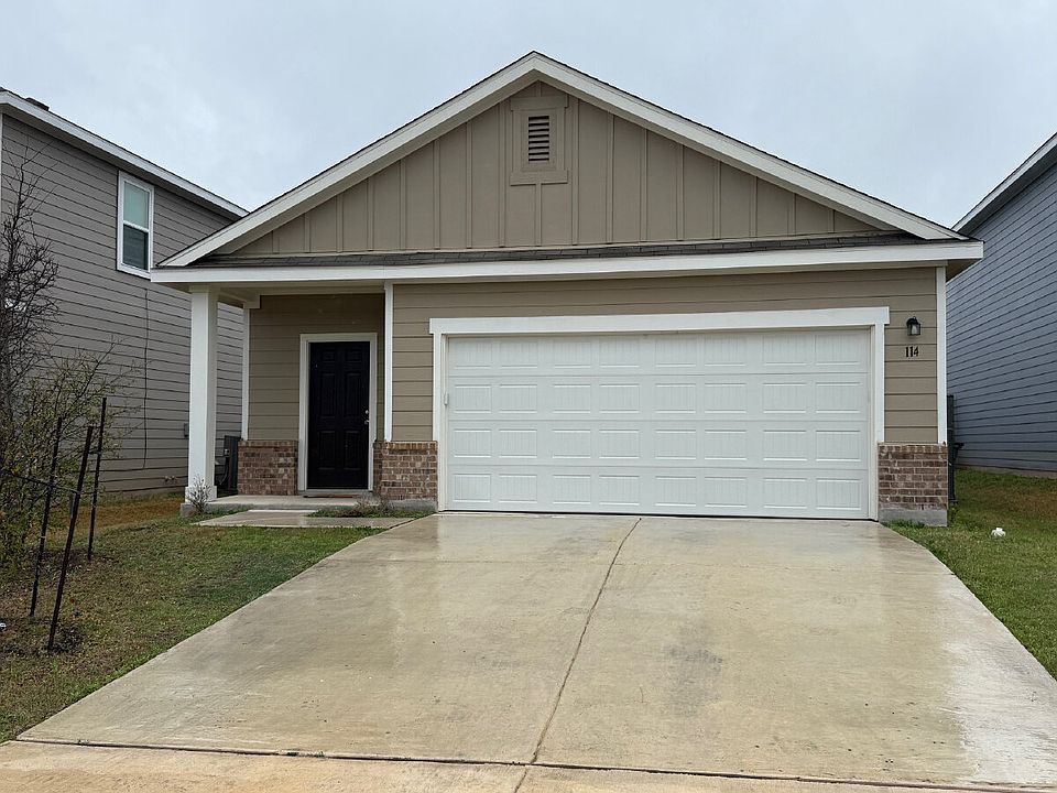 Inspired by the serene charm of Texas living, 114 Aoudad Rd in Hutto offers a harmonious blend of comfort and style. This delightful 3-bedroom, 2-bath home provides 1401 sq ft of inviting living space, perfect for creating cherished memories. Step inside to discover a thoughtfully designed floor plan that maximizes both functionality and warmth. The spacious bedrooms promise restful nights, while two full baths deliver convenience for the whole family. Nestled in a friendly neighborhood, the property offers a peaceful retreat from the hustle and bustle of daily life. With ample room for relaxation and entertaining, this home is a versatile canvas for your personal touch. Its prime location in Hutto ensures easy access to local amenities and vibrant community events. Whether you're enjoying the comfort of your cozy living room or exploring the surrounding area, 114 Aoudad Rd offers a delightful living experience. Make this charming residence your next home and embrace the inviting lifestyle it promises. Qualifications include a minimum credit score of 650, proof of income three times the monthly rent amount, and an excellent rental history. No smoking. No Evictions. A background check will be conducted on all applicants over 18. Each applicant must complete a pre screening before a tour.