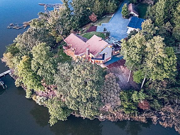 Waterfront Architectural Masterpiece - skillfully designed to capture every spectacular angle of its remarkable 650 linear feet of water frontage. Privacy permeates the 4+ acre estate while offering sweeping views of College Creek and the James River in the distance. Designed by world-renowned artist and architect, this treasure of a home offers a tranquil escape from the ordinary. The geometric work of art - crafted with only the finest materials - was completely renovated and expanded in 2017 and 2021 while staying true to its original design. The property boasts an indulgent owner’s suite, panoramic water views, a theater with 2 loft balconies, a state-of-the-art sauna, covered boathouse and floating dock - for deep-water boating enthusiasts, 2 kitchens, a project room, and much more. Stunning sunsets pour through the home's southwest-facing windows. This private oasis, nestled in the heart of Williamsburg, is minutes from renowned College of William & Mary and Historic Williamsburg.