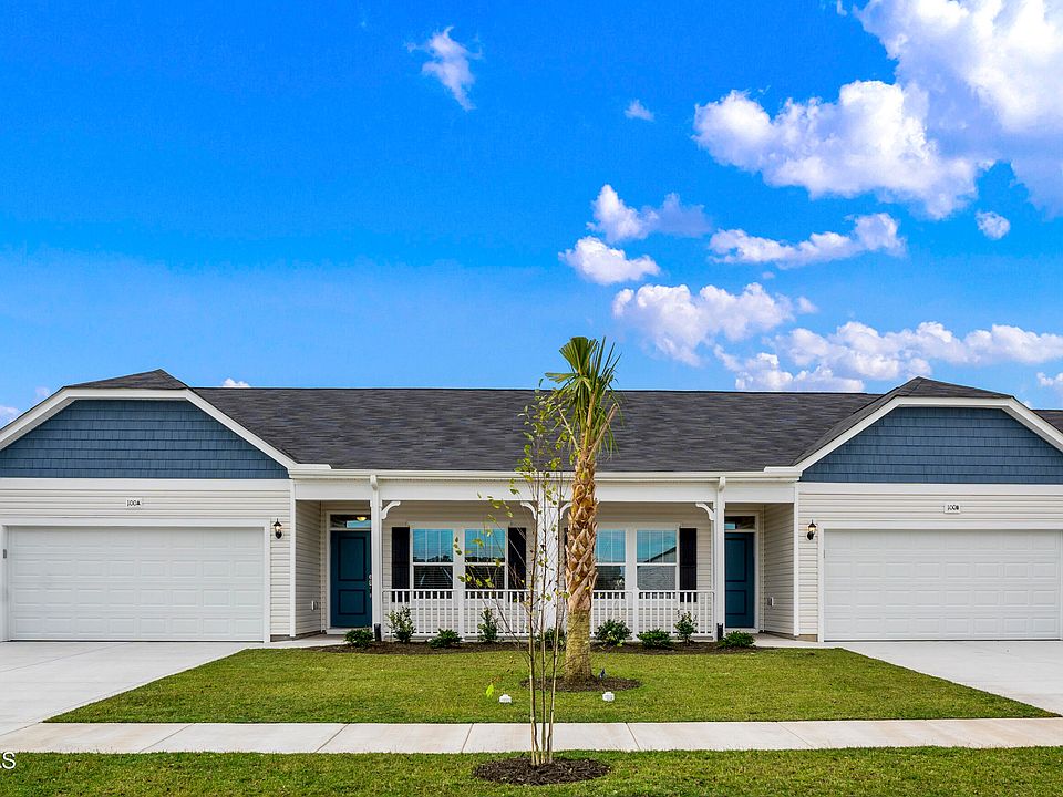 The Ivy by Dream Finders Homes is a brand-new paired villa home floor plan with 2 bedrooms, 2 full bathrooms, an office, 2 car garage, and is 1604 sq. ft. The covered entry way opens up to the foyer and through to the open concept living area. A bedroom is located to the right of the foyer followed by a full bath and study. The opposite side of the home contains the kitchen and family room space. The kitchen features an island with a flush overhang and casual dining area that opens up to the spacious family room with back patio access. The master suite is located in the back of the home and features a walk-in closet, master bathroom. Villas at Seaside is an amazing location for anyone who enjoys being on the water or at the beach. Located centrally between Sunset Beach and Ocean Isle, you can be at either beach within minutes. In addition, there is a marina & yacht club nearby. Photos are of a model home for representational purposes only, and may show different options and upgrades selected. Estimated completion date April 2023