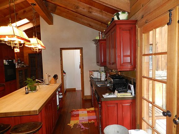 This is a unique property with a lot of potential. This would be an excellent choice for extended family, as there are 3 separate buildings. The main house has main living area with 2 Bedrooms and 2 Baths. There is an artist studio/ office/3rd bedroom with full bath and partial kitchen. Full guest apartment, 1 bedroom (4th bedroom), 1 bath above garage. Located at the entrance to Gimlet; surrounded by mature trees and next to the bike path. Custom kitchen; master suite; Hardwood floors throughout with carpet in bedrooms. Skylights let light into this barn style home, fabulous deck plumbed for a hot tub and gas for BBQ; chicken coop/pen. Directions: From Ketchum, South on HWY 75, east on Gimlet Road, North (left) on Aspen Hollow Rd, down on right, look for sign.