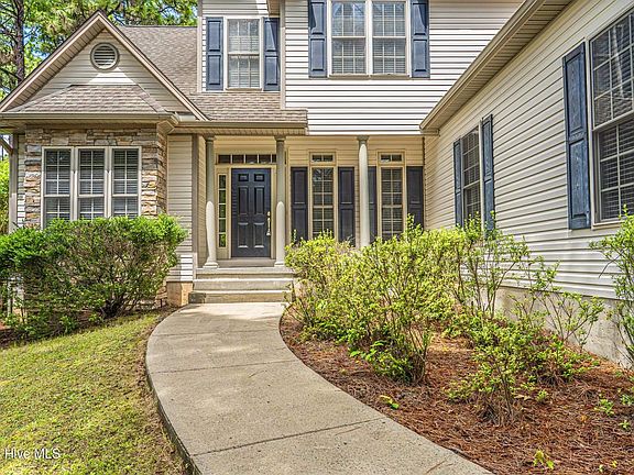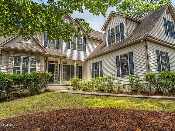 Nestled in Seven Lakes West, this beautifully maintained home offers the perfect blend of comfort and convenience. Situated on over half an acre, it boasts an ideal location near the back gate for easy community access. Step inside to discover hardwood flooring flowing through the kitchen, formal dining room, and breakfast nook. The spacious primary bedroom is conveniently located on the first floor, featuring a large walk-in closet and a well-appointed primary bathroom. An additional bedroom is also found on the main level. Upstairs, you'll find two more bedrooms and a versatile bonus room that could easily serve as a fifth bedroom, all complemented by a full outside to your tranquil retreat: a screened-in back porch and fire pit perfect for relaxing. Extra storage is a breeze with a dedicated room in the walk-in crawl space. Enjoy the perks of lake living with access to Lake Auman just minutes from your doorstep!