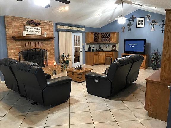 Custom 3 bedroom 3 bath open floor plan with shop on a beautiful treed lot in Krugerville. Ceramic tile floors, granite countertops & bonus room with windows overlooking the huge backyard. WBFP in living room. All upgraded plumbing fixtures. 80 gallon electric water heater with 25 year warranty. New aerobic system. 36x40 Shop in back with add. 24x24 enclosed ac MAN CAVE, LED lighting, water softener and filter, 30 amp 110v hookup & dump station for RV, toilet & sink, cooking area with 3 compartment commercial style sink, cedar clothes closet & 140'deep water well with new pump replaced August of 2019 to automatic sprinkler system & service water to shop. Too much to list makes this a must see!