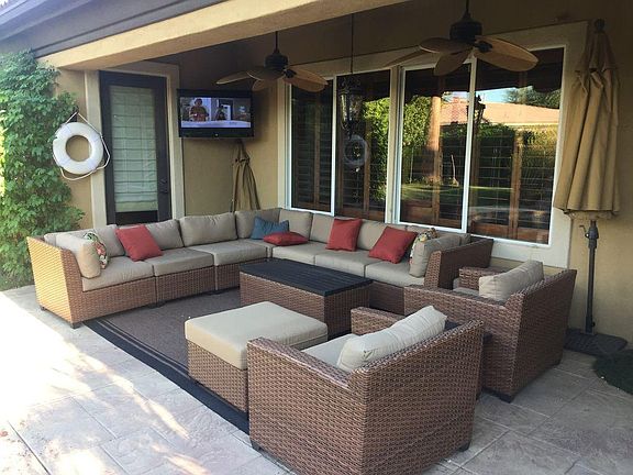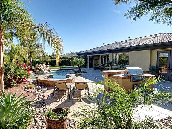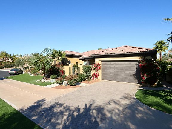 AVAILABLE. ONE YEAR LEASE ONLY. PET FRIENDLY. Spectacular Palm Desert Oasis - 3 Bed/3.5 Bath Pool/Spa/Putting Green. Lots of privacy. House sits at the end of a cul-de-sac. NO SUBLETTING! YEARLY LEASE RENTAL $4395 PER MONTH. Enter the property by walking into the private entry courtyard with fountain to this spectacular home built new in 2005. 3 bedrooms, 3.5 baths. The house has been highly upgraded: granite slab kitchen counters, fireplace, custom flooring & shutters throughout. The house has been wired for surround sound. Relax in the magnificent backyard featuring a rock waterfall, heated salt water pebble tec pool retiled, built-in BBQ area and putting green. Beautiful private yard fully landscaped with patio sitting area. House equipped with WIFI High Speed Internet access, Roku. TV also on the back patio. Huge Master Suite comes with large walk-in closet and custom built-ins. The kitchen has all stainless steel appliances. 3 car garage with epoxy flooring in garage with custom built-ins for storage. The laundry room is equipped with a brand new Whirpool top loading washing machine and front loading dryer. The home sits on a large lot--total lot size is 11,325sq ft at the end of a cul de sac in a gated community. The pool and yard have regularly scheduled weekly maintenance service. Adjacent to 6 acre park with amenities including: baseball/softball/soccer/football fields, basketball/tennis/volleyball courts, dog park and trails. YEARLY LEASE. Owner pays for pool service and landscaping service. Tenant to all other utilities. No smoking. Up to 2 total pets ok (dogs or cats). NO SUBLETTING! ONE YEAR LEASE ONLY AVAILABLE. PET FRIENDLY. FURNISHED. ONE YEAR LEASE ONLY. NO SMOKING. LONG TERM LEASE ONLY.