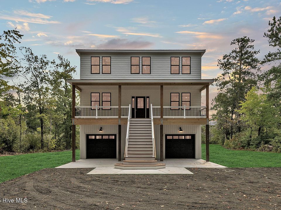 Custom built Beach Box built on top of a 1221 SF 2 car garage. 5 Bedrooms 3 bath. No detail overlooked. Luxurious finishes. Screened in back dacks! Black fixtures and hardware throughout. Elevator Shaft ready Yes it is possible to build a pier to the water. Upgraded appliance package.