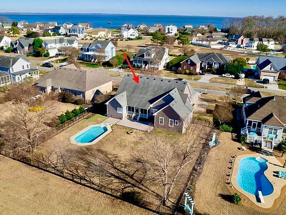 Welcome to this beautiful single story home in Riversedge, a highly sought-after sound front community offering an easy commute to Elizabeth City, Hampton Roads and the Outer Banks. This community offers numerous amenities to include a boat ramp with a long pier, picnic area, boat parking, a waterfront park, tennis courts, nature trails as well as clubhouse for private and community events. This home is nestled within the community and just a short stroll from the waterfront - a perfect place to catch the sun rise over the Currituck Sound. Sunsets can easily be enjoyed from the screened-in back porch overlooking a fenced-in back yard and beautiful in-ground pool. This home features an open dining and living area, a large eat-in kitchen complete with a breakfast bar, stainless steel appliances, granite counters, a casual dining area in addition to a flex space. Primary bedroom features a spacious ensuite bath with large tub, walk-in shower and dual sinks. Primary closet with built-in storage system. This home also features three additional bedrooms, two full baths, large FROG and a HUGE walk-in attic storage which offers lots of potential for possible future expansion. Laundry room, two car garage and additional parking along the left side of the house. Don't miss the chance to own this beautiful home and experience the laid-back life style this community offers!