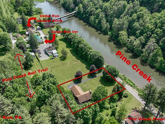 CEDAR RUN with views! PINE CREEK frontage & easy access to the RAIL TRAIL! This beautiful home has been meticulously cared for and it shows! Some of the features include a huge stone fireplace, renovated kitchen with custom hickory cabinetry, cathedral ceiling, and contemporary design. Also a loft bedroom en-suite, oversized 2 car garage and did I mention the VIEWS! Fish, kayak, bike, stroll to Cedar Run for ice cream & dinner. All within STEPS of your front door! If you have been dreaming of a beautiful vacation home or permanent residence in the most desirable village in all of Pine Creek Valley, it just doesn't get any better than this! Hi speed internet also available! Whole house generator included. POF or pre-approval submitted before showing approval granted The back corner of the house appears to be in flood zone AE but the rest of the of the house is in X-shaded. Flood map in documents