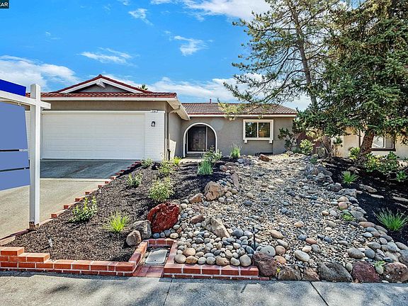 Welcome to this wonderful single-family detached ranch-style home with a welcoming and comfortable layout. Featuring 3 bedrooms, 2 bathrooms, and over 1,500 square feet of expansive living space, the open floor plan, high ceilings, and tons of natural light create a spacious and inviting atmosphere. The beautiful kitchen includes stainless steel appliances, an abundance of cabinet space and overlooks a cozy family room with vaulted ceilings, and a woodburning brick fireplace that adds a touch of charm and warmth to the communal area. The connecting living room offers an enormous space to entertain guests. The large primary bedroom suite offers two generously sized closets, an ensuite bathroom and direct access to the backyard which is a haven for relaxation and recreation, with an oversized deck and large side yards. Convenient location on a quiet, serene court provides a peaceful setting, while its proximity to BART, Highway 4 and 680 ensures convenient access to transportation routes. The Veranda is a quick 10-minute drive and provides entertainment, restaurants and loads of shopping. Come experience this comfortable and well-appointed home that offers both tranquility and modern amenities.