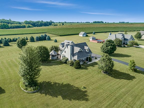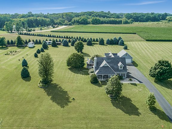 Looking for peace & tranquility in the country? Here it is! Quality-built, custom cape cod nestled on two acres offers over 3800 square feet of living space for your family! Lovely front porch entrance. Two-story,vaulted living room boasts floor to ceiling accented brick fireplace w/ cedar mantle & gorgeous hardwood floors. Spacious, fully applianced kitchen has serving island, eating area & plenty of room to entertain. Large, first floor suite has private bath w/ separate shower, dual sinks and soaker tub. Huge second floor bonus room can be used as a family room or media room between two dormer bedrooms. Oak trim & doors throughout. Expansive, finished basement has play room, rec room w/ bar area and plenty of storage. Perfect for the car collector: Attached three car heated garage & two car detached garage w/ 9 ft ceilings. Watch those sunsets on your private tree-lined backyard and relax on the (18X14) patio & cozy gazebo. Fox river access! Pride of ownership throughout!