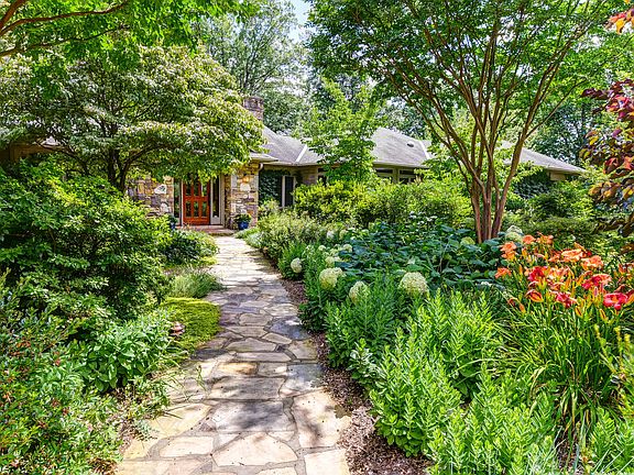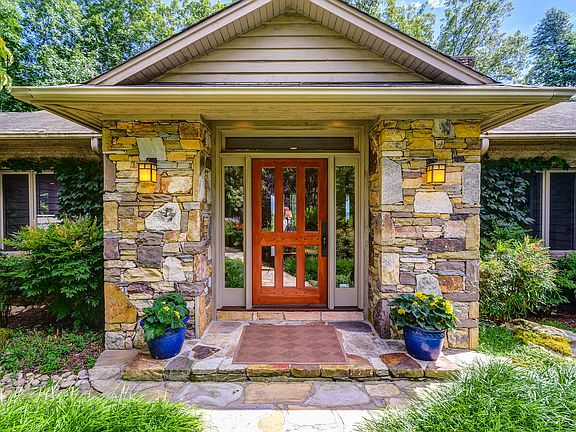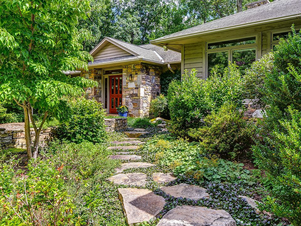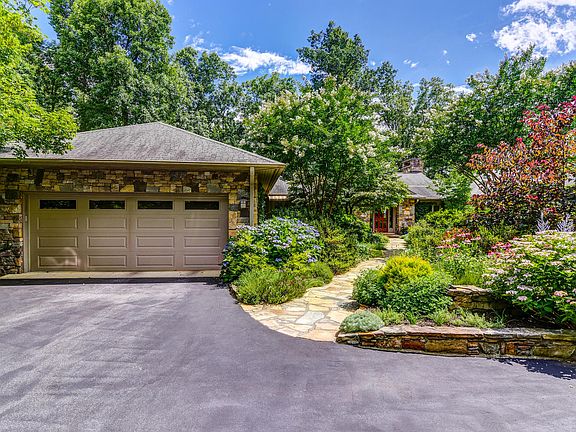 Situated on 3.7 beautiful natural landscaped acres overlooking mtn views and splendid water feature which meanders throughout the property, this home combines sophisticated design and custom finishes into an extremely functional open floor plan filled with natural light. Multiple glass doors and windows look out over a soothing setting: lush landscaping, mtn views, waterfalls and more. Outstanding cook's delight kitchen with high-end features and expansive great room/dining area-both w/fireplaces are just a few of the many spectacular features. Relax in the master suite or head to the private master deck and enjoy the spa. All of this on one level. Amazing outdoor space which includes the lovely screened porch, master suite deck, stone patio, pebbled courtyard and lap pool with stone decking. Stone steps and hardscape frame this one of a kind estate. This unique gem seamlessly integrates the outdoors with the spacious open floor plan interior that maximizes the gorgeous views.