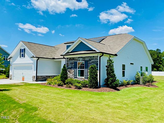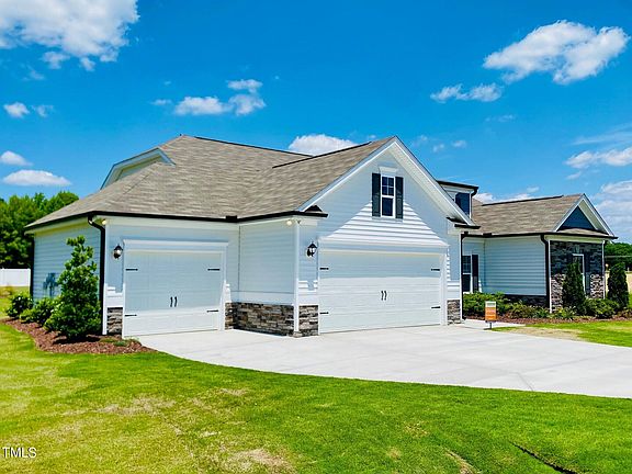 Smith Douglas presents the Lancaster plan at our Beverly Place community with move in June of 2024 . This spectacular ranch home featuring a 3-car garage, 3 spacious bedrooms and 2.5 elegant baths, and a versatile living room that can also be transformed into a formal dining room. Nestled on a generous 0.55-acre lot, this residence offers abundant interior storage throughout, luxurious granite countertops and sleek stainless-steel appliances in the kitchen, and stunning vinyl plank flooring in the main-living areas and primary bedroom. Boasting additional windows for ample natural lighting throughout the home, it ensures a bright and welcoming atmosphere. The impressive Owner's Suite includes a walk-in-closet and an en-suite with a dual-bowl quartz vanity, a relaxing soaker tub, and a large tile shower. Residents can enjoy the community pool and serene pond, both within walking distance. This home is perfectly positioned next to the scenic Reedy Creek Golf Course and conveniently located just 30 minutes from vibrant downtown Raleigh and 5 minutes from I-40. As a former model home, it is being sold ''as is.'' This beautiful home will not last long, so reach out to our New Home Specialist before it's too late!