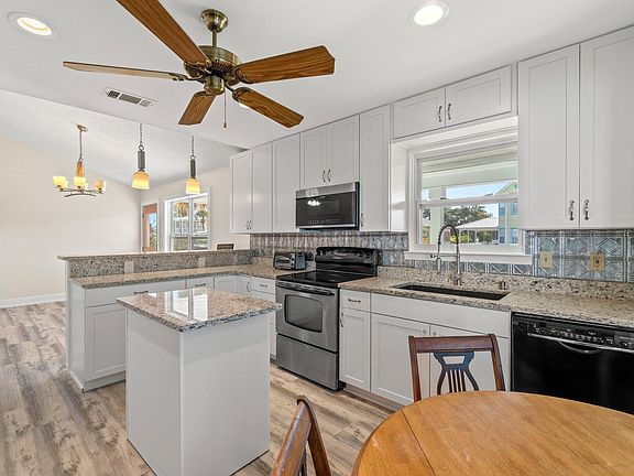 OWNER FINANCING AVAILABLE. 5% interest rate available to well-qualified buyer. Welcome to your new 3 Bed/2 Bath Beach Cottage, located in the quiet Panama City Beach neighborhood of Bid-A-Wee Beach, one of the few communities that offer residents their very own private beach access. This home marries historic Beach charm with modern finishes. Completely remodeled inside and out, this home features a new roof, new hardie board siding, fresh paint throughout, new vinyl plank flooring, and new windows. You'll love this home's vaulted ceilings and open living room, as well as the gourmet kitchen, which features a breakfast bar, kitchen island, and stainless-steel appliances. The primary bedroom suite features a large walk-in closet with custom shelving. The primary bathroom ensuite is nothing short of luxurious featuring a double sink vanity, a large tile walk-in shower, and a separate soaking tub. This beach home is completed by the two guest bedrooms, guest bathroom, and laundry room. This home is perfect for anyone looking for a primary residence or second home; however, this quiet street does not allow short-term rentals. Call today and start living the coastal lifestyle you deserve.
