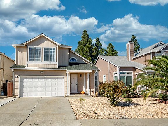 Welcome to your new home! Meticulously cared for, beautifully remodeled, move-in ready home with desirable court location near parks, shopping, entertainment, restaurants, Suisun Waterfront and TAFB. Almost $100,000 spent on recent improvements! Bright and open living/dining combo with vaulted ceilings. Stunning kitchen with breakfast bar, soft-close cabinets & drawers, quartz countertops, stainless steel appliances and gas stove. Updated wood burning fireplace ready for your holiday stockings. Wood-grain laminate flooring throughout downstairs completes the classy ambiance. Newer carpets on stairs and in upstairs bedrooms. Oversized primary suite with gorgeous primary bathroom featuring dual sinks, large walk-in shower and walk-in closet. Second and third bedroom share elegant, updated hallway bathroom. Super low maintenance landscape improvements to the front and back yard includes a pergola for shaded outdoor dining and entertainment and concrete for a basketball hoop or other games. Moen water shutoff installed. No HOA or Mello-Ross! Images NOT digitally enhanced. What you see is what you get. Just relax, enjoy and entertain. Make it yours for the holidays!