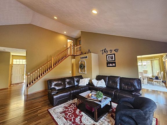This one owner, 4 bedroom, 3.5 bathrooms two-story home is as pristine as they come! With over 3,600 total sq feet of living space, this home has so much to offer. Vaulted ceilings welcome you into the airy great room with newer Brazilian cherry wood floors throughout. Main floor spacious master boasts a connected bathroom with a double vanity granite countertops, whirlpool tub, stand up shower, and walk in closet. First floor office and laundry room with washer and dryer that stay. HGTV worthy kitchen has been recently remodeled with modern granite countertops and matching full height granite backsplash for that wow factor, as well as new stainless steel appliances that stay. Stove is currently electric but can be gas. Eat in kitchen, a formal large dining room and half bath complete the first level. Upstairs you'll find 3 more ample spaced bedrooms and a full bathroom. The partially exposed lower level provides even more entertaining space with a vast rec room/wet bar area as well as another living room, full bathroom with whirlpool tub, and extra storage areas. 3 car garage with a sink and cabinets for even more storage. We're not done yet! The generous deck overlooks the fully tree lined .5 acre lot that features a beautiful brick firepit and lounge area, patio and meticulous yard to enjoy those great summer days and nights. Updates include new roof within 10 years, new kitchen within 1 year, Brazilian cherry wood flooring within 2 years. Located close to a golf course, new park and many other amenities. This is a must see!