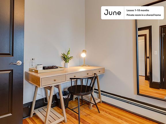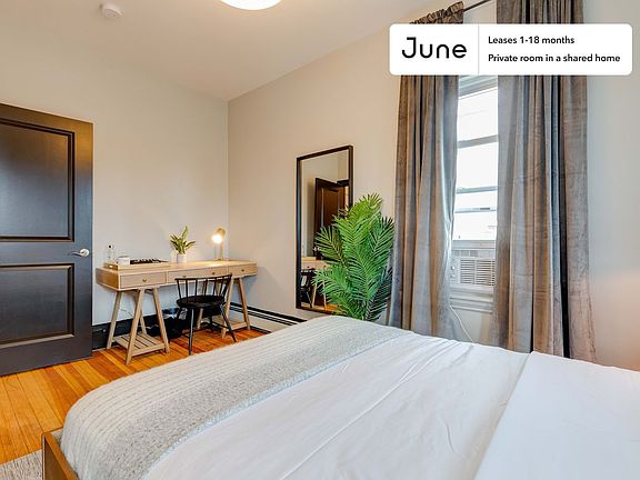 This Queen room in South Boston is available on a 12 month lease or a flexible short term (31 to 364 days) lease. You pick your custom start and end date. Monthly rent rate is determined by furnishing preference, move-in date and move-out date. Speak to a June representative for recommendations on the best stay duration for the lowest rate.