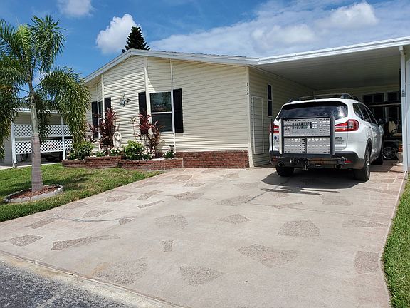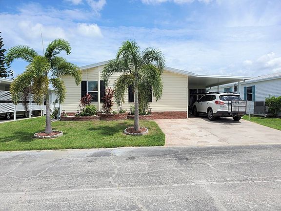 Just Reduced $125,000 TURNKEY WOW.... Do we have a home for you! This very large 2002 mobile home has 1,596 sq ft of indoor living space and comes turnkey! Lovely curb appeal with two front palm trees and brick flower beds. Side driveway, carport and an enclosed side patio with a storage shed. Plenty of room in the storage shed for your beach gear, bikes, tools, and holiday decor. This home is wheelchair accessible with a built-in ramp. The back of the home has a darling patio area with a sun setter retractable awning. Relax and watch the wildlife swim around the lake. It is very peaceful and relaxing. The home has been beautifully maintained. It has 2 bedrooms and 2 bathrooms. Stepping inside the home from the side enclosed patio area you enter through the sliding glass doors to the large dining room that opens to the kitchen and living room. This kitchen is a cooks/baker's dream kitchen. Tons of counter and cabinet space. Nice center island with storage underneath. Updated white appliances, reverse osmosis, and ceramic tile floors. Large open living room with beautiful furnishings. This home has cathedral ceilings and nice laminate flooring. Ceiling fans throughout. Indoor laundry room with a washer and dryer. Plenty of storage for your household cleaning supplies. Guest bedroom is spacious with a step-in closet. The guest bathroom has a tub/shower combo, built-in cabinets, and ceramic tile floors. Huge master bedroom with mirrored wall closets. Ensuite bathroom has a large vanity with double sinks and a spacious vanity area. The bathroom also has built-in cabinets and a step-in shower with a sliding glass door. New AC 2018. Shingle Roof 8 years old. A 2011 (star) golf cart is included. It has new batteries/charger. This is a must see home!! Call today and make this your Florida dream home! Realize your Florida retirement dreams... contemporary Florida homes, great neighbors, a beautifully landscaped community, and a full agenda of leisure activities. The Gardens is a premier 55+ lifestyle manufactured home community located on Southwest Florida's Gulf Coast. Residents participate in numerous activities & daily events at the 13,000 sq. foot Clubhouse. Get a great workout at our modern fitness center or simply lounge by our beautiful, heated Olympic-sized swimming pool. The Palm Lake Social Club is the hub of our activities at The Gardens and a vital part of the community. See below for a little insight into the types of activities our residents enjoy: Art Club, Billiards, Bingo, Bob O'keefe Softball, Bowling, Bridge, Bunko, Canasta, Ceramics, Chorus, Cribbage, Dances/Dinners, Dart Club, Game night, Horseshoes, Ladies Book Club, Living Well Exercise, Yoga, Quilting, Shuffleboard, Tennis, Tuesday Morning Coffee, Water Aerobics and more. Lot rent is $842.54 per month. All listing information given to us is considered appropriate and reliable but always recommend Home Inspections by independent companies who have a background and thorough understanding of manufactured homes. We cannot guarantee the accuracy of information given to us or the condition of the home. Lot rents are determined by the community office not our company.