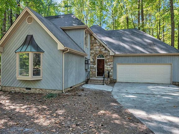Beautifully renovated home in one of Cary's highly desired neighborhoods. All work has been permitted. This earthy home sits on just under half an acre and is right on the Greenway. Vaulted ceilings, sky lights, and natural wood features give this home a unique look while still feeling cozy. The bottom floor boasts a massive kitchen with large island and plenty of cabinet space, a separate dining area, laundry room, and half bath. The living room has an eye catching, floor to ceiling, stone fireplace and opens up to a beautiful deck. Featuring its own deck access, large walk-in closet, and luxurious en-suite, it has it all. Master bath completed with dual vanities, rainfall shower, and soaking tub, you can enjoy a spa like experience in your own home! Upstairs you'll find 2 nice size bedrooms with great closet space, as well as another bathroom. The third bedroom has an attached bonus room that could serve many uses. The home also has an attached two-car garage with plenty of room for a workspace! ATTN: Seller is replacing roof, but has an open claim with insurance. Also ceilings will be repaired.