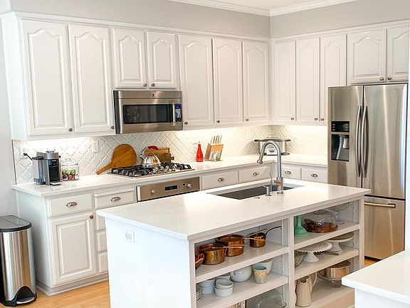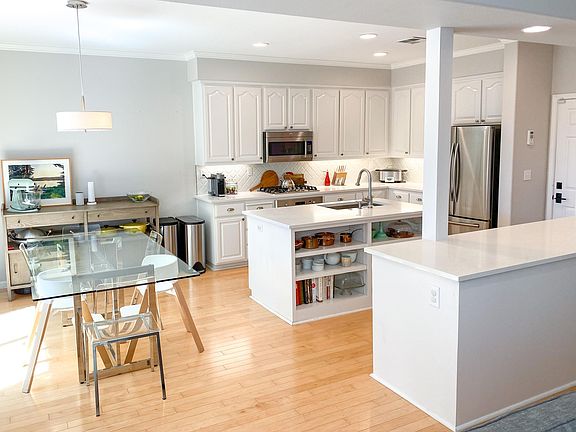Excellent location is walkable to downtown Danville. Front corner, detached home with double side yards. View of the Las Trampas Ridge. Entire home has been renovated within the last five years. Open floor plan kitchen, dining room and family room is perfect for entertaining. Kitchen features quartz countertops, cabinet pull outs, a custom pantry and top tier SS appliances. Cozy family room w/55" TV above a custom gas fireplace. All three bathrooms completely renovated in 2020. Hardwood floors throughout. Entire interior recently painted. Large primary suite includes a newly renovated spa-like bathroom, gas fireplace and a custom walk-in closet. Custom blackout shades and closet systems. 2nd floor laundry is convenient to all bedrooms. Loft space (currently used as a home office) opens to a private front patio. Private back patio includes a tranquil fountain, in-ground watering system and garden lights. Roomy garage with large storage shelves. Landlord pays HOA dues.