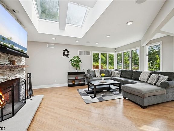 Welcome to this stunning custom ranch located in a serene mountain location with winter views in desirable Bridgewater Township. Fresh, modern and immaculate this home boasts a large eat-in kitchen with stainless steel appliances, granite countertops, tile backsplash, vaulted ceilings & a separate breakfast nook. The open concept main living area flows seamlessly between the kitchen, spacious dining room & beautifully lit living room which also includes a 2 story turret of windows and fireplace. All the bedrooms are positioned away from the main living area highlighted by the primary suite which features a gorgeous en suite bathroom & walk in closet. The finished basement adds additional living space including a generously sized family room, private den / office, laundry room & half bathroom. As you step outside you will feel like you are in your own private oasis. This home is professionally landscaped and also features an elegant wrap-around travertine patio with room for sitting and dining areas which leads to a newly installed hot tub. The location is very convenient with easy access to major highways, train to NYC and major shopping. This home is truly a turn key property and a must see!