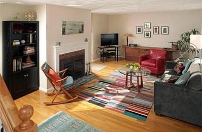 A beautiful end unit townhome with all the charm & feel of a single family home. Hardwood floors throughout. Updated kitchen/concrete counters/stainless appliances, & breakfast bar, adjacent dining room with sliders leading to expansive deck. A spacious livingroom with fireplace,master bedroom with walkin closet, tiled full bath w double sink, & two more additional bedrooms. Full basement provides ample storage.Close to all Harbor amenities. ONE INDOOR CAT PER OWNER OCCUPIED UNIT ALLOWED.