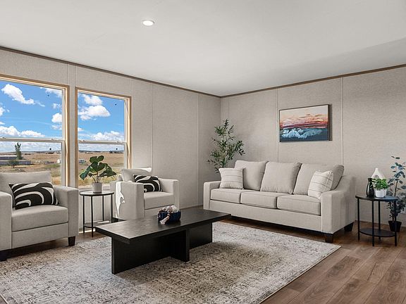 Take advantage of the seller's 1% credit for closing costs or a rate buy-down! This brand-new Champion home qualifies for USDA's $0-down loan, with estimated payments under $2,100/month including taxes and insurance (varies by lender, credit, and fees). Just south of Moriarty, this beautiful home sits on 2 acres, with a permanent foundation and painted cinder-block skirting. Inside, enjoy 3 bedrooms, 2 bathrooms, an open floor plan, a spacious living area, and a large kitchen with a center island, ample cabinets, and abundant counter space. Additional features include refrigerated air, a smart thermostat, recessed lighting, walk-in closets, durable smart panel siding, and no carpet. The backyard is a blank canvas with stunning Manzano Mountain views and peaceful country living.
