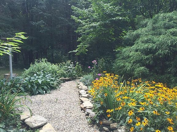 Beautifully designed country home on 16 acres of gardens, woods, trails and stone walls. This 3 bedroom finely crafted home has a central chimney with an Alagash wood stove in the living room, and a Bengal antique cook stove in the kitchen. The spacious living room has sliders to a covered wrap-around porch. The kitchen has stainless steel appliances, granite counter, maple flooring and a walk-in pantry. The dining room is a newer addition featuring a cathedral ceiling and French doors connecting to a deck overlooking fruit trees. The second level features an eye catching wood ceiling. The lower level has three bedrooms, full bath, laundry, and wood stove. The laundry room has potential as a 3rd bathroom. The large garage/barn has a 2nd floor work space. Hiking trails on the property provide serenity on early morning walks. Schools, churches and shops are close by, as well as the Littleville Lake for fishing and kayaking. This is a unique country property - come take a look!