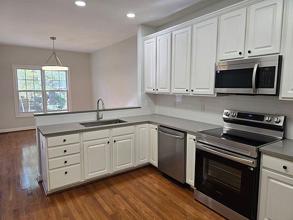 This beautifully updated townhome in the heart of Cary offers modern comfort with a fresh remodel and thoughtful upgrades. The gorgeous new quartz countertops, stylish backsplash, and sleek new appliance package make the kitchen a standout, complemented by hardwood floors in the dining area and kitchen. The family room with gas logs provides a cozy ambiance and overlooks a private backyard with an extra storage room. Upstairs, the primary suite features a separate tub and shower, a spacious walk-in closet, and access to a floored attic for even more storage. Located in the desirable Landings at Pine Creek, this home is ready to welcome its next residents. With thoughtful updates and a fantastic layout, its the perfect place to settle in and make your own.$150 admin fee. Landlord believes home contains approx 1641 sqft but tenant shall verify & not rely upon foregoing representation. Rented as is unless otherwise agreed. Required Resident Benefit Package $49.95/month includes liability insurance, credit building, identity theft protection, HVAC air filter delivery, on-demand pest control & much more!