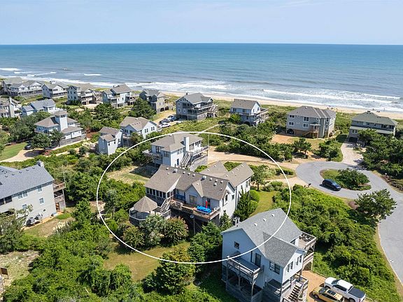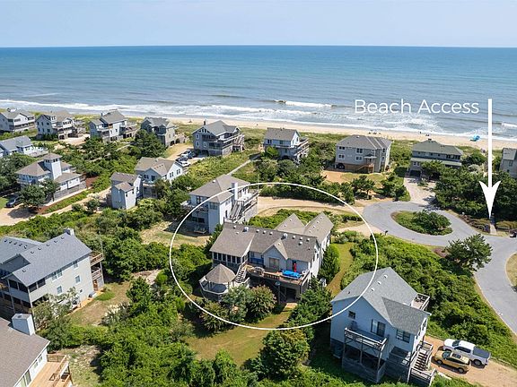 SEMI-OCEANFRONT! BREATHTAKING VIEWS! ELEVATOR! STEPS TO THE BEACH ON A QUIET CUL-DE-SAC! TASTEFULLY UPDATED! METICULOUSLY MAINTAINED! Modern comforts meet coastal charm at 114 Bunting Lane. Perfect opportunity to buy a semi-oceanfront home in Duck’s coveted Sanderling neighborhood! Not a rental and pride of ownership shines. Located one lot from the beach in the sought-after Sanderling neighborhood, 114 Bunting Lane offers a serene and luxurious lifestyle with easy access to Duck’s pristine beaches and within a short drive to Duck’s vibrant town center. Every corner of this meticulously designed home exudes coastal appeal. The third floor’s open-concept living area features soaring ceilings and large windows that flood the space with natural light and provide breathtaking views of the Atlantic Ocean and surrounding greenery. You and your guests will move effortlessly from the living area to the wonderful dining space, and a gourmet kitchen boasting modern stainless steel appliances, beautiful custom cabinetry, custom tile work, granite countertops, wine refrigerator, and Andersen french doors to deck. Just off the living area is a semi-private sitting area (with a half-bath) perfect for enjoying a good book, playing board games with your family and friends, or just to relax in after a long day at the beach. Or unwind outdoors on the expansive deck off the dining area that overlooks the beautifully landscaped yard, holds a hot tub, and boasts a relaxing gazebo. The deck offers plenty of room for lounging, and enjoying al fresco dining, soaking up the Carolina sun, and enjoying the refreshing coastal breeze. Also on the third floor is a very roomy primary suite, a true oasis of relaxation with plenty of room for a king-size bed! This primary bedroom’s ensuite bathroom offers a private haven all its own gorgeous, custom tile walk-in shower plus plenty of vanity space. Additionally, the primary bedroom opens to a lovely screened porch to enjoy all that nature offers. Move downstairs using the elevator or staircase to the second floor where there are four inviting bedrooms for guests or additional family members to enjoy. There is a second primary bedroom that is very spacious, open and bright with a king bed and seating area featuring a loveseat and 2 chairs. This private sanctuary is completed with a beautiful ensuite bathroom featuring a custom tile shower, plenty of closet space and stacked washer/dryer...and access to the back deck and hot tub! There is another tastefully appointed ensuite bedroom and two additional bedrooms which share the hallway full bathroom.The ground floor boasts a one-car attached garage, a cool shaded area covered to escape the hot sun, an outdoor shower for washing off after a day at the beach, and access to the driveway plus a beautifully manicured yard and plant life. Maintenance and repair, replacement or remodeling has been both proactive and routine. 114 Bunting Lane offers the ideal blend of modern comforts, beach charm, and location on the Outer Banks. Once a bird sanctuary, Sanderling has so much to offer including one mile of uncrowded beach, 10 ocean accesses, 2 sound front accesses, a boat ramp and crabbing dock. There are nature paths through the entire subdivision. The amenity complex includes a large sound front pool, a kiddie pool, tennis courts and a state of the art work out facility explicitly for owners and their families. Three highly acclaimed restaurants are within a comfortable walk and a short bike ride takes you to the Town of Duck. Residents and guests of the remarkable 114 Bunting Lane home will love the amenities and charm of Duck including boutique shopping, delectable cuisine at local restaurants, leisurely sunny days on sandy, secluded beaches or the sound, and much more. This home’s features and location allow you to experience the coastal lifestyle to the fullest! PLEASE SEE THE VIRTUAL TOUR VIDEO AND REQUEST SPECIAL FEATURES/IMPROVEMENTS SHEET!