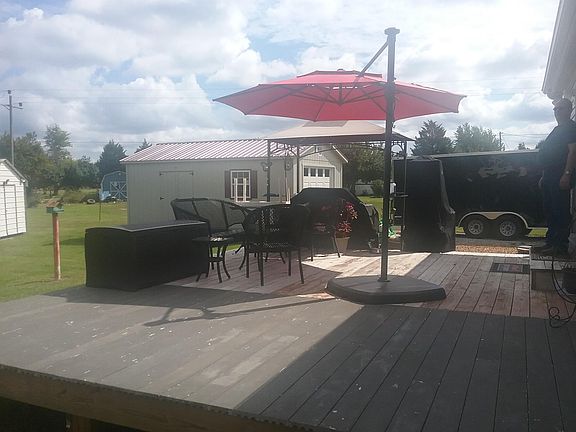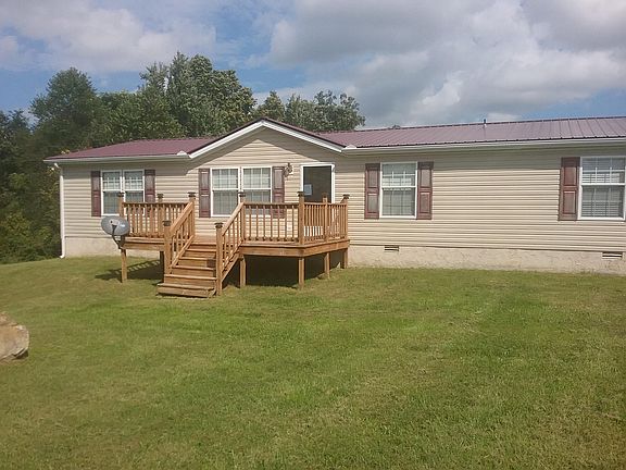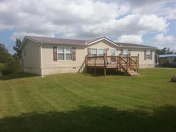 This is an excellent opportunity to become a homeowner at an bargain price. This doublewide measures 27x56 and sits on a permanent foundation, has a front porch and rear deck. Many improvements include new A/C unit, water heater(less than a year old), roof and gutters that are only 2 years old. Inside there is new paint, trim, and flooring, plus the appliances and alarm system stay. Outside, there are two large storage buildings that will stay (one has overhead door and could used as a garage. This all sets on 1.2 acres of grassy lawn. If you are looking for a great home at a great price, this is a must see.