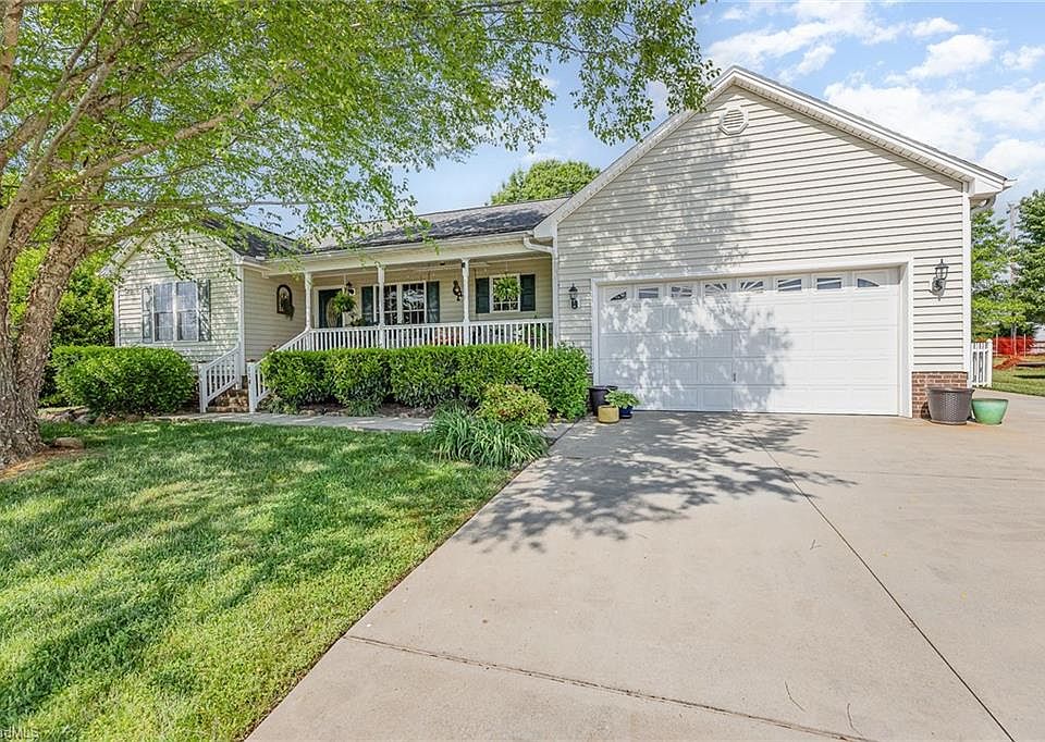 Lovely one level living in Carson Farms East in Burlington. Popular split floor plan, built in 2005, with 2 car oversized garage. 3 bedrooms, 2 full bathrooms, and a terrific plan with vaulted ceilings. Spacious living room with Fireplace- opens to a giant laundry room and back screened in porch, deck, and fenced yard with storage building. Kitchen with formal dining space, large pantry, and tons of cabinets. Newer vinyl plank flooring, newer refrigerator (to remain). Covered front porch, gorgeous landscaping, and tons of parking in driveway and pad at the right side. Primary suite with enormous walk in closet, built in desk area, and private bath with double sinks and giant linen closet. Pull down attic in garage ceiling. Close to Whitsett, Greensboro, and Gibsonville. Move right in! List agent related to seller. See agent only.