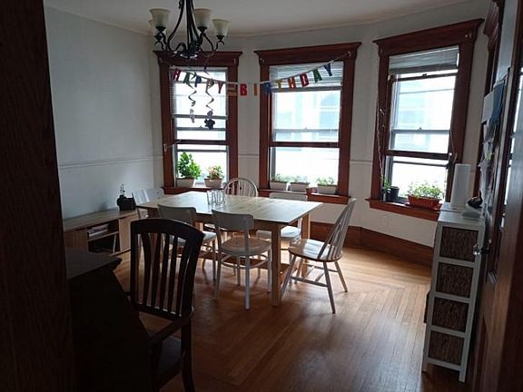 2 bedroom apartment on the 2nd floor of a 3 family house in the Hooker district. Available mid-October/November 1st. Close to the great shops of Orange Street. 1/2 block from the Yale shuttle and city bus stops. Hardwood floors throughout. Beautiful original woodwork details. Nice work-in kitchen with walk-through pantry. 3 season carpeted front porch with electricity. Additional smaller rear porch gets great Southern light. 1 garage space provided. Ample on-street parking. Fenced in backyard. Private washer and dryer in the basement. The owner will consider 1 small pet. Solid income and credit required. Video tour available.