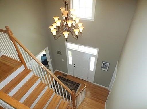 Spectacular Colonial located in the heart of Great Woods!!! Walk into your open foyer to the second floor with hardwood floors throughout the main level of living. Formal living room with french doors upon entry and french doors leading into the formal dining room. Family room with brick fireplace and recessed lighting. Kitchen with dining area, stainless steel appliances, granite counter tops, center island with breakfast bar and sliders which lead to your amazing stone patio and fire pit perfect for relaxing and entertaining. Second floor boasts hardwood floors in the main hallway, a master bedroom with walk in closet and en suite that has granite counter tops and a double vanity. There are three additional large bedrooms located on this level with a full bath hosting double vanity with granite. 9' ceilings on first floor. Basement has 9' ceiling and casement windows and is rough plumbed for bath for future finishing, Prof manicured landscaping. Avg: gas 125.23/mo, elec $82