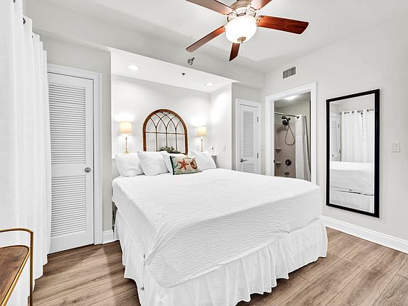 Updated 1 BR 1BA with breathtaking lake and Gulf views and resort style amenities. Enjoy the best of coastal living in this fully renovated 4th floor condo offering panoramic lake and Gulf views with unforgettable sunsets from your private balcony. This 1 bedroom, 1 bath, unit has been thoughtfully updated with luxury plank (LVP) flooring, elegant wainscoting, quartz countertops, a large upgraded sink, and newer furnishings, creating a fresh and modern beach retreat. Located in Carillon Beach Resort with resort style amenities, including: 4 swimming pools, one directly on the beach, tennis and basketball courts, new pickleball courts, playground, lush green spaces, paver stone walkways that are beautifully landscaped, 8 private deeded beach accesses with one mile of private beach, private dock for fishing, a vibrant Town Center featuring restaurants, boutiques, a spa and salon, yoga studio, fitness center, coffee shop, wine bar, and kayak and golf cart rentals. Perfect as a primary residence, second home, or investment property, this unit offers a rare combination of modern finishes, incredible views, and top-tier amenities, and all a 3 minute walk to the gorgeous, sugar-white sands of the Gulf and only 10 minute drive to 30A and Pier Park. Don't miss this turnkey opportunity in a true coastal resort community!