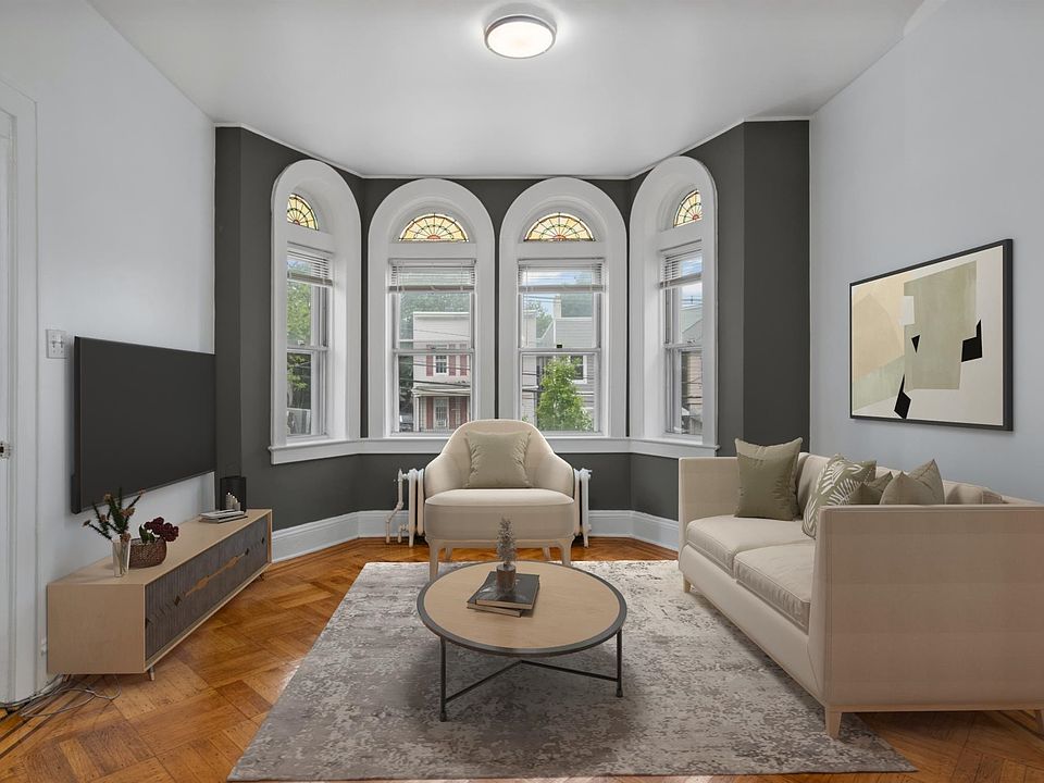 Welcome to your sun-drenched Victorian home in the heart of Jersey City Heights w/ 3 Months Free Parking! Step into a beautifully preserved 1918 Victorian at 114 Carlton Ave Unit 2, where historic charm meets modern comfort. This rare 2-bedroom + den, 1-bath apartment (930 ft ,) in a well maintained two-unit building boasts original hardwood floors, elegant stained-glass accents, and custom wainscoting. South-facing living room floods the space with light, creating a warm, inviting atmosphere. The versatile den, perfect for a home office, nursery, or creative studio, is a rare find. Enjoy a fully equipped kitchen with dishwasher, in-unit washer/dryer, and ample closets. Pet-friendly and ideal for couples, young professionals, or small families, it's steps from Leonard Gordon Park, Port Authority bus, and Journal Square PATH, with top schools nearby. Limited-Time Offer: Lease by August 15th and enjoy 3 months of free nearby parking, a $675+ value; (keep or release afterward) Don't miss this rare blend of soulful historic details and modern functionality in one of Jersey City's most vibrant neighborhoods.