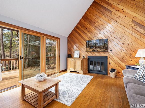 Perfect for peaceful getaways, this charming lakefront cabin is nestled in a quiet cove, offering stunning views and tranquility. The gently sloping lot provides ample space for entertaining, with a fire pit and an oversized lakefront deck, perfect for enjoying serene moments by the water. Inside, you'll find hardwood floors throughout the main level, featuring a spacious dining area and large living room with walls of glass that flood the space with natural light. A cozy fireplace and vaulted ceilings complete the inviting atmosphere. The basement offers additional space, ideal for a den, play area, or extra sleeping quarters. The fenced yard is perfect for your furry friends, and there's plenty of parking for guests. This home is being sold fully furnished, ready for you to move in and start your next lakeside adventure. Was lightly rented with rental history.