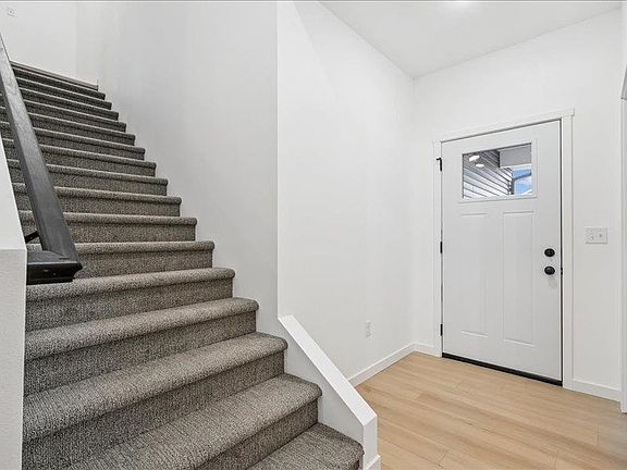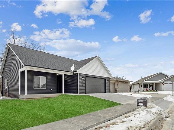 This newly constructed zero-entry walkout home features one and a half stories, offering four bedrooms and four bathrooms within over 2,300 square feet of living space, along with a three-car garage. The main level showcases luxury vinyl plank flooring throughout the kitchen, dining area, and living room. In the living room, you can enjoy the ambiance of an electric fireplace, beautifully accented by custom shiplap. The well-appointed kitchen includes quartz countertops, white-painted cabinets, and matching trim and doors. It features a large island, a laundry room/pantry area, a dining nook, and a 12x12 deck that is accessible from the dining area. You have the option to create your master suite with a walk-in tiled shower either on the upper level or the main level. The spacious lower level includes a wet bar, an inviting family room, the potential for a fifth bedroom, and ample storage space. Photos show the 2 car version of this home. This home is a 3 car garage.
