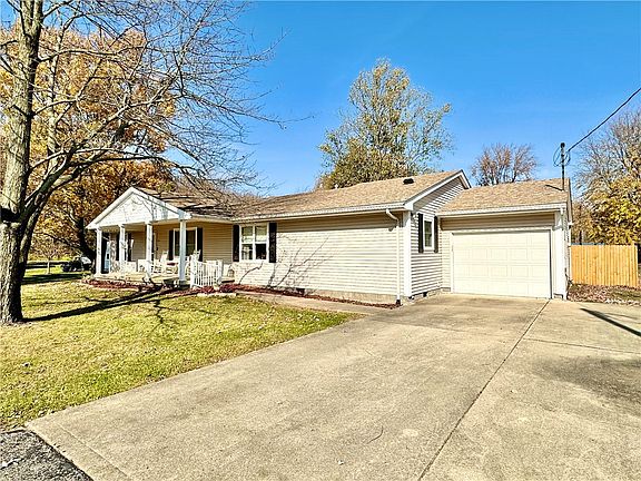 This remarkable property is a single-level gem in Marshall, Illinois, situated on a spacious city lot with a secure fence. The ranch-style home boasts three bedrooms, thoughtfully arranged in a split floor plan. Recently, the kitchen has been completely renovated, and a stylish bar has been added. New engineered hardwood floors now grace the entirety of the home, providing not only a warm atmosphere but also a touch of rustic charm topped with fresh paint. You'll find a new rear porch that is perfect for savoring your morning coffee, offering both privacy and serenity thanks to the newly installed fence that encloses the backyard. And for those cozy evenings, a fresh firepit has been added to enhance the outdoor ambiance. This property truly offers the best of both indoor and outdoor living.