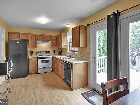Welcome to this sweet 3 story interior townhouse unit in the popular Quail Ridge development in Lititz! The classy brick front exterior and blue trim set it apart from the others. The first floor features an open floor plan from lovely living room at the entrance to the bright and cheery kitchen and dining area with a great view through the sliding glass door opening to a large treed yard just beyond the refinished deck. A powder room is conveniently located off the kitchen and completes the first floor living space. The second floor offers a primary bedroom painted in a calming green palette, sunny & bright second bedroom and a full bath with ceramic tile floor. Both bedrooms have nice closet space. A bonus third story can be utilized as a 3rd bedroom, private office, quiet oasis or playroom. The home has a full basement with outside entrance to the yard. It serves as the laundry room and is large enough to finish into additional living space. Conveniently located within walking distance from John R Bonfield Elementary school and the Warwick-Ephrata rail trail.