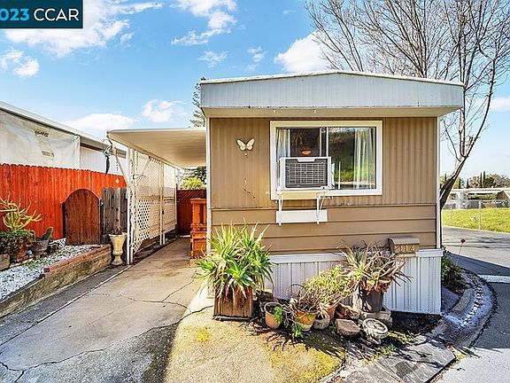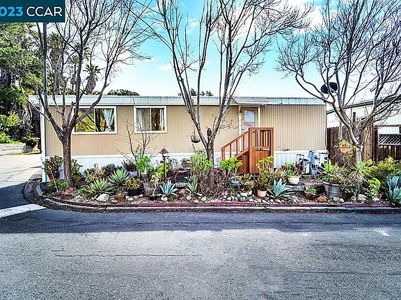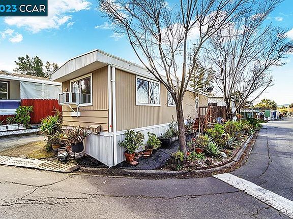 Beautifully kept single wide mobile home located in highly sought after family park. Home is situated in a great area of the park - on a quiet street with no front neighbors and minimal traffic. Features include freshly painted interior, laminate hard wood floors through out, private yard with nectarine and peach trees, and comparably low space rent. Park is located in central Concord and just up the street from BART. Open house scheduled for March 25th from 1-4pm.